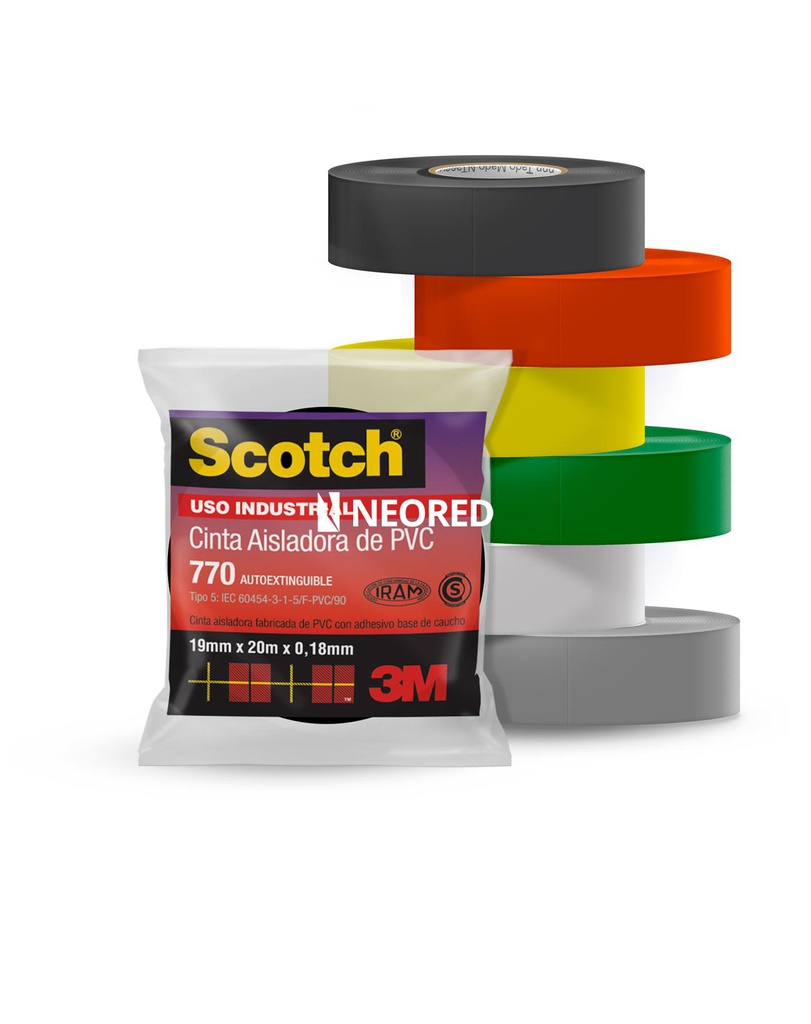 Excelente memoria elástica y 200% de elongación.Posee gran flexibilidad garantizando una extraordinaria adhesión a cualquier superficie.Retardante a la llama, auto extinguible y resistente a los rayos UV.Opera eficientemente en rangos de temperatura de -7°C hasta 90°C.Resistente a la abrasión, ácidos y álcalis. Cinta de PVC de uso industrial Cuando necesites una cinta eléctrica confiable, con gran seguridad y de uso tanto general como especializado, la cinta Scotch 770 es tu mejor opción. Su adhesivo ultrasensible a la presión está diseñada para todo tipo de trabajos de mediana exigencia en ambientes industriales.